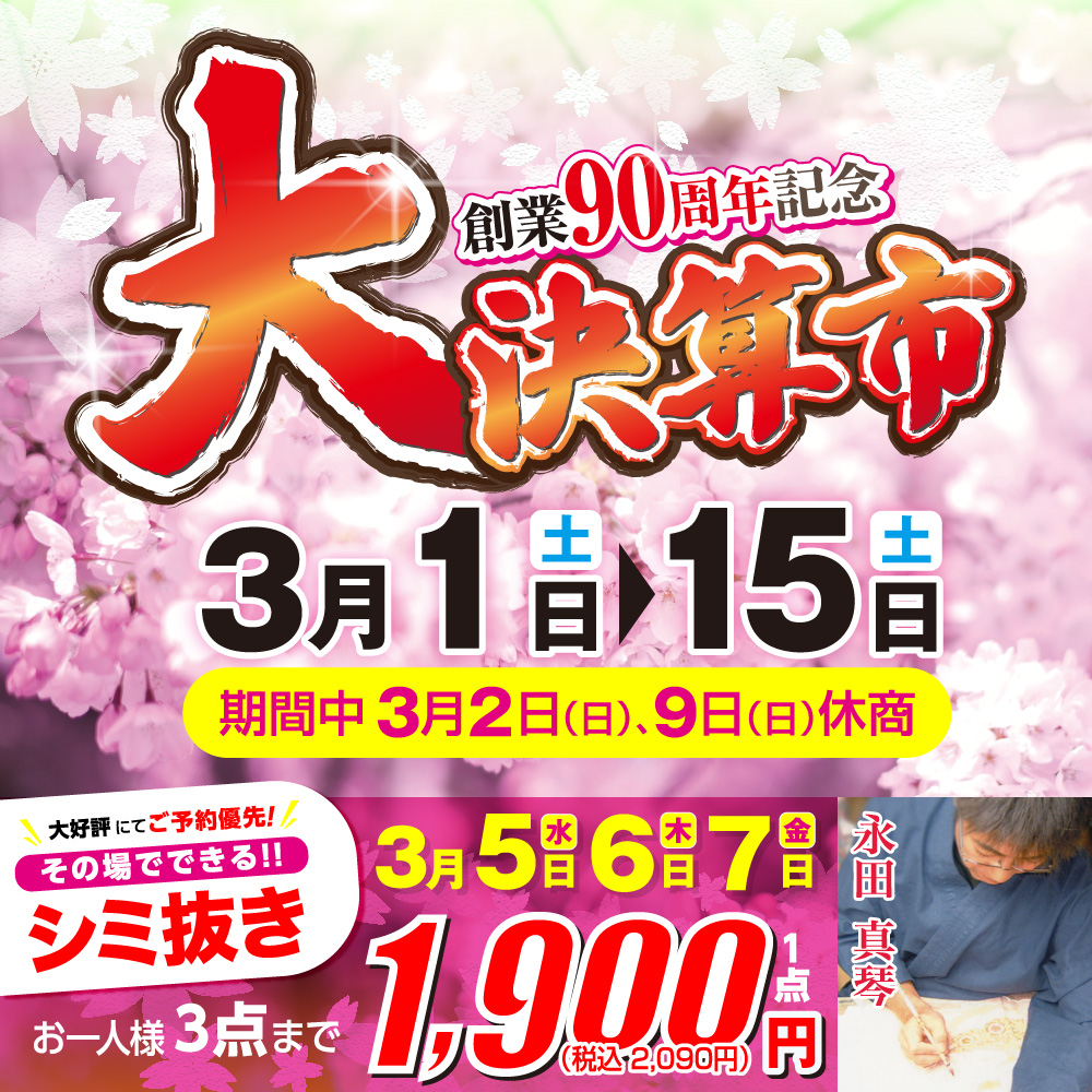 3/1(土)〜15(土)弊社にて “大決算市” を開催いたします。(3/2(日)・9(日)休商)