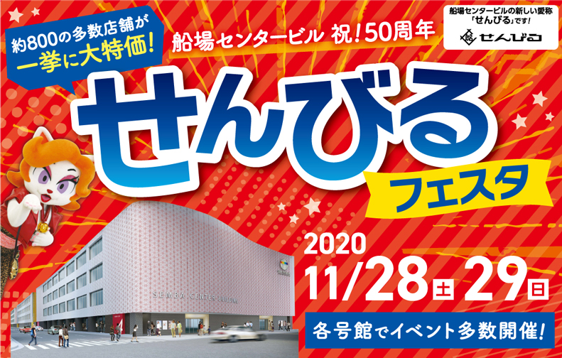 11/28(土)・29(日)、50周年を迎えた船場センタービルにて”せんびるフェスタ”が開催れます。お取り寄せグルメ市、フルーツ収穫体験、パンまつり、鉄道フェスティバル等、他イベントが盛りだくさん。
